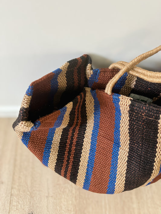 UitverkochtJute bag blue and black stripe